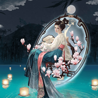 天风夜来,云开雾散,是夜并无月明。可奇的是,水中却漾着一轮圆月,风来不散。水边的少女,心中讶异,用手去触碰“月影”,却发现是一面镜子。镜子,少女向来避之不及,只因她生来一副奇丑容颜。可在她已决意赴死之夜,再照一次镜子又何妨?不料,那镜中倒映出的却是一张少年的脸庞,俊美无铸,殊色近妖,可眉目之间极为凄怨。镜中人开口自述,他本是风流才子,却因相貌俊秀而遭妒,被人做法困于镜中。少女将镜子摔碎,镜中人终于得救,二人的容颜也发生了逆转。少女得到了镜中人姝丽的颜色,而镜中人也摆脱了带来厄运的美貌,变得丑陋无比。二人得偿所愿,各自散去。
