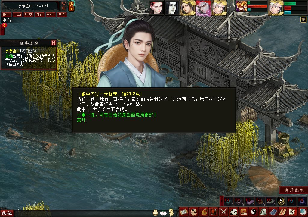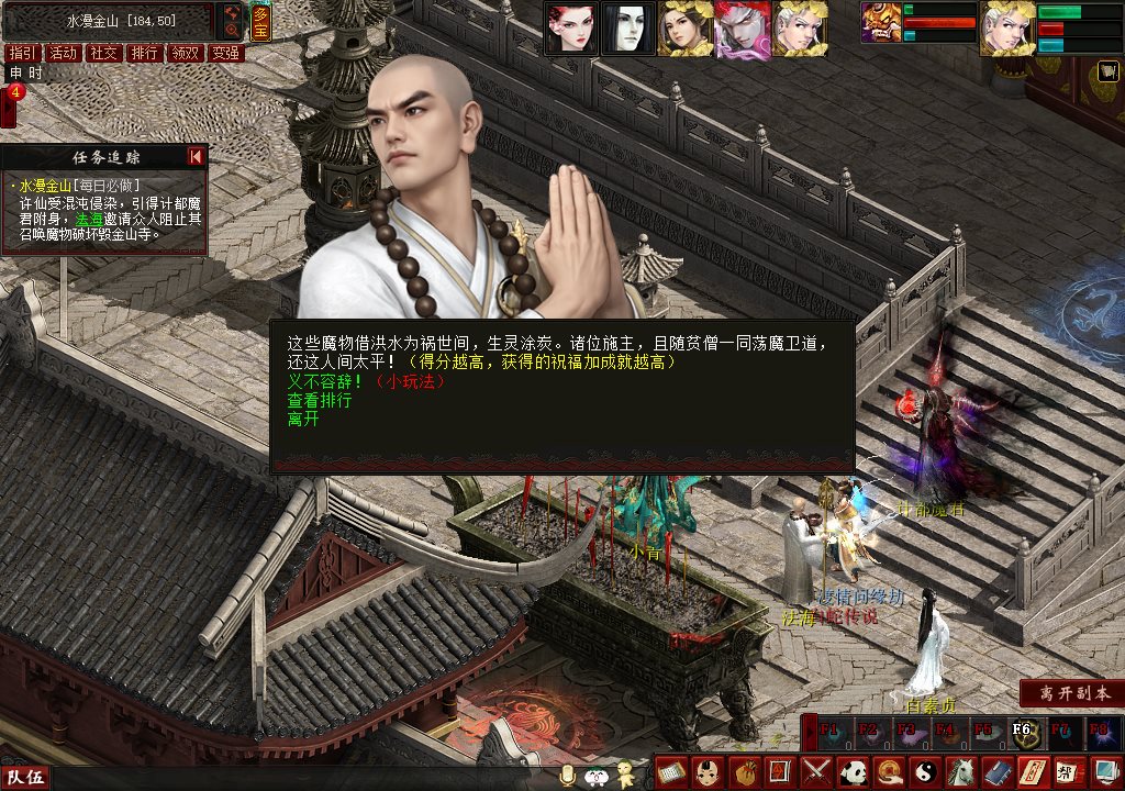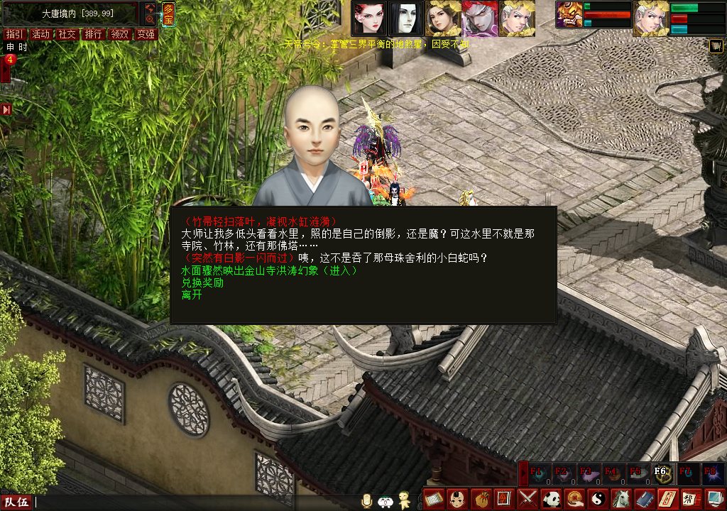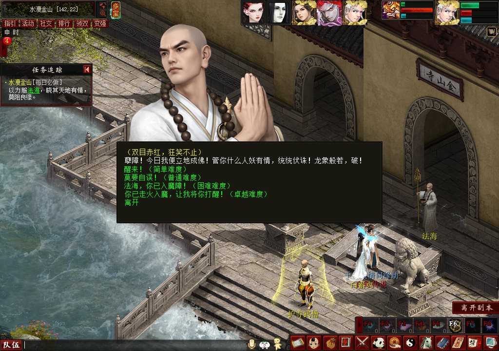 5人组队,从大唐境内(384,98)小沙弥法海处进入『水漫金山』副本