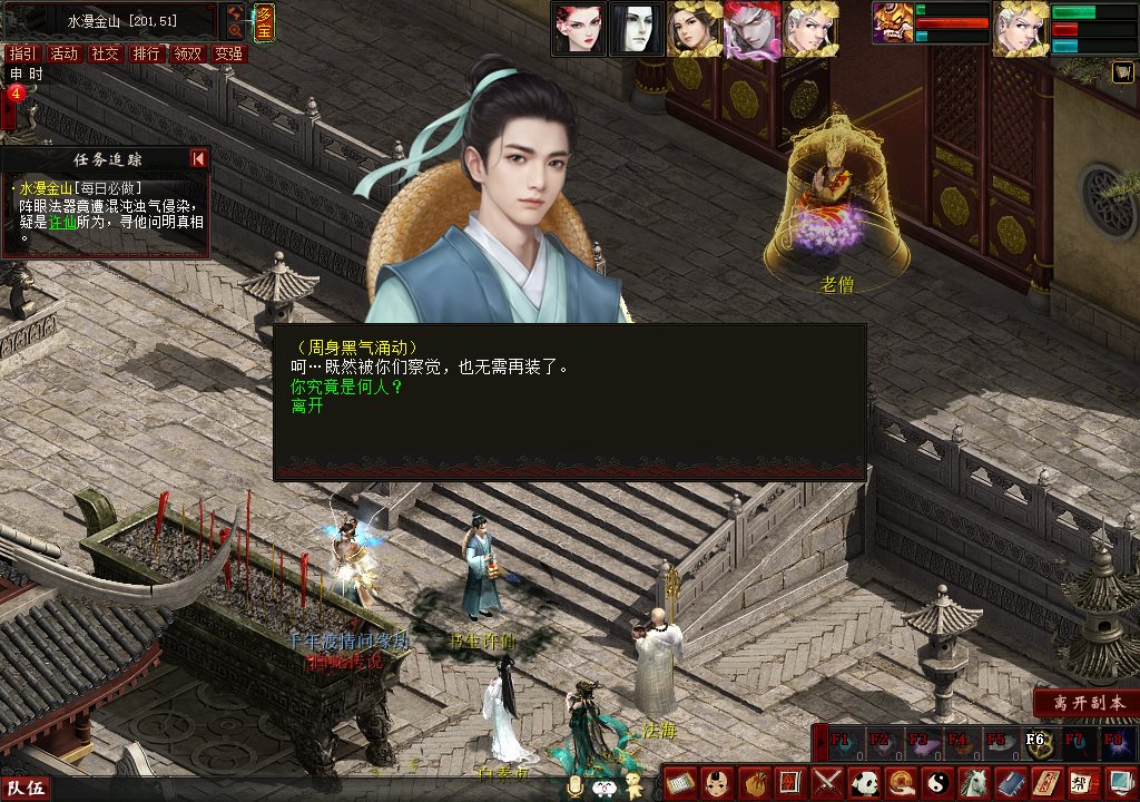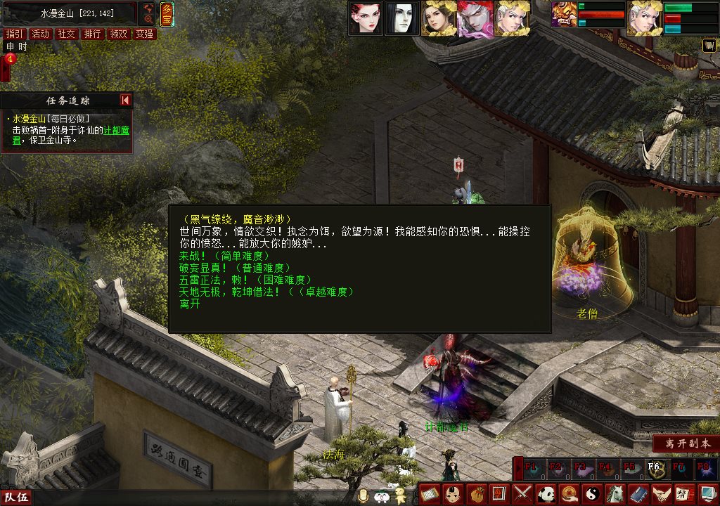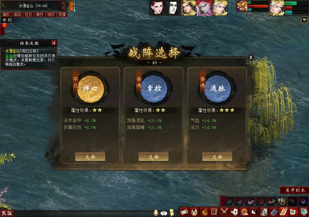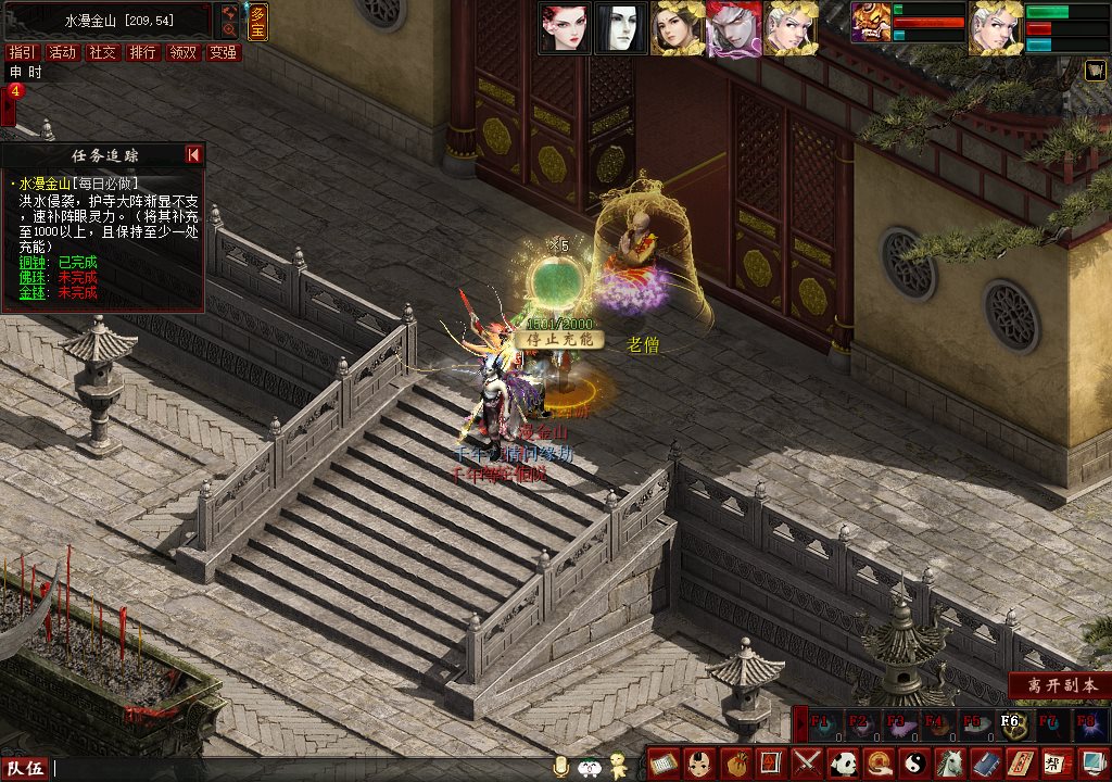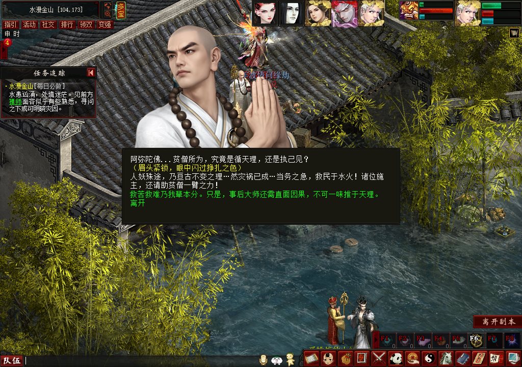 5人组队,从大唐境内(384,98)小沙弥法海处进入『水漫金山』副本