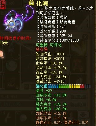 护身符当然是选择加深的属性,炼化也是加深为主,能加深带大力属性最佳。