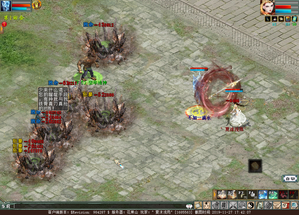 图中可以看到,对方是双男鬼阵容,在双双开了罩子的情况下,龙族一个霹雳直接放倒两个男鬼,在仙来说是很难做到的。
