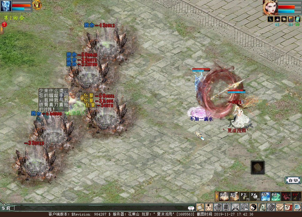 可以看到,天籁克的情况下,秒困难小蛇82万,秒简单小蛇85万,伤害不输同装备水平的仙,而且逆鳞开启后输出增加,3法门的情况下还可以秒两次,在有些高难度任务中也有很好的表现。