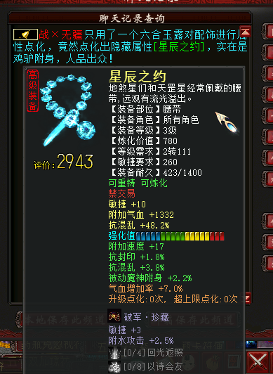 还有幸运的朋友接连2件配饰都是一次点化成功,真是让人羡慕。