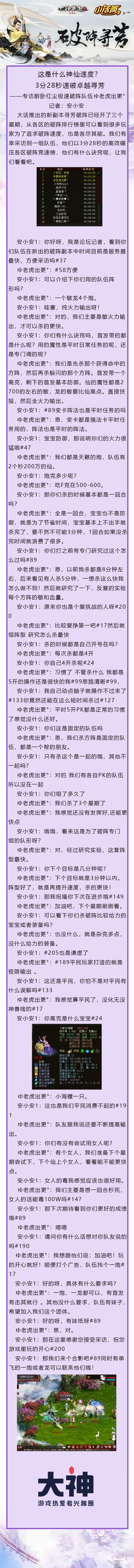 大话推出的新副本寻芳破阵已经开了一段时间,从各区的破阵排行榜里可以看到很多玩家为了追求破阵速度,也是各尽其能。我们有幸采访到一组队伍,他们以3分28秒的高效碾压各区破阵竞速榜,他们有什么诀窍呢,让我们看看吧。