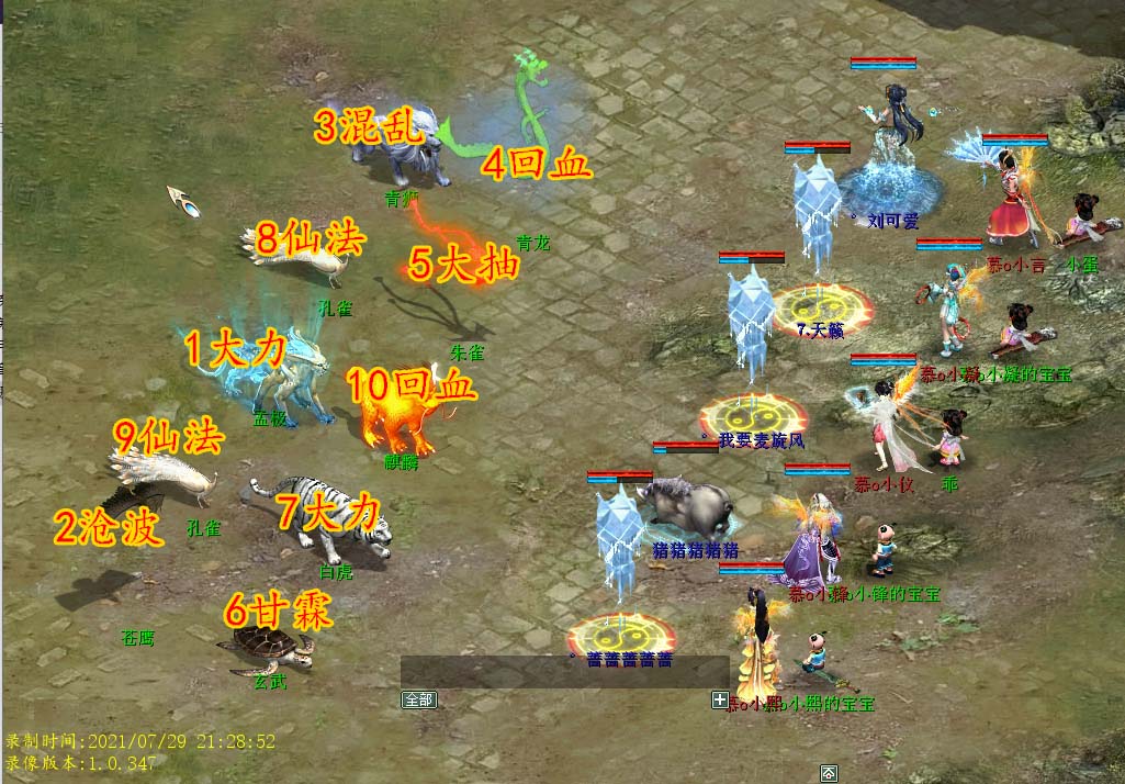 最后一个BOSS比较头疼的就是主怪孟极,血厚敏高攻击高,出手带分身和隔山还有神鬼有几率隐身,小队建议带情网控制孟极。点麒麟抽秒混,补混混乱怪青狮和情网主怪孟极,小怪血都不高,只有孟极功高血厚,很容易被其一套带走,情网控制是关键。