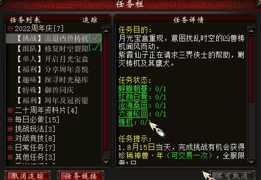 挑战-击退凶手梼杌(BOSS任务)