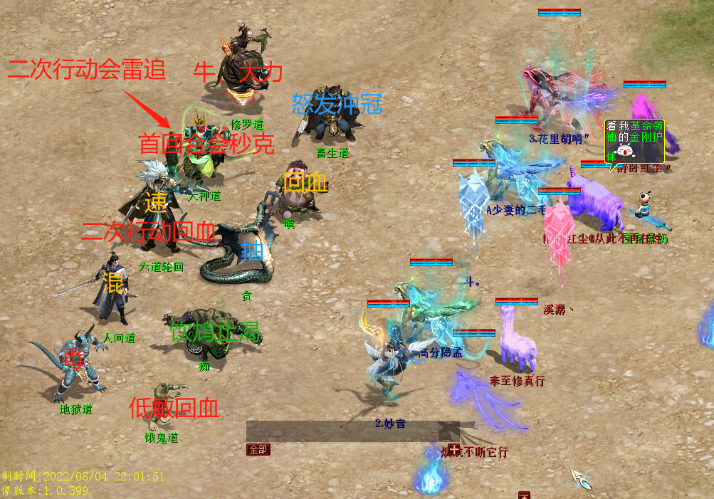 这个boss第一回合,主怪、修罗道、天神道会行动两次。第一次起速加秒克,第二次就是常规技能了。有条件的带俩克,一定要秒死饮鸩止渴或者怒发冲冠一个,鬼很容易就中怒发冲冠了。这个boss注意一下细节就可以,抗混还是挺高的。