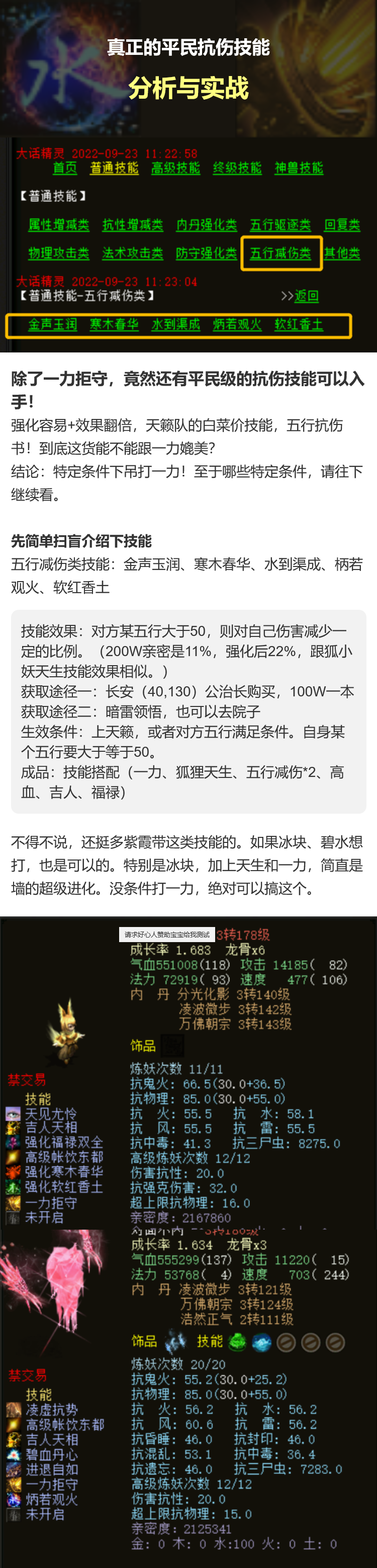 玩家分享:平民抗伤技能-分析与实战