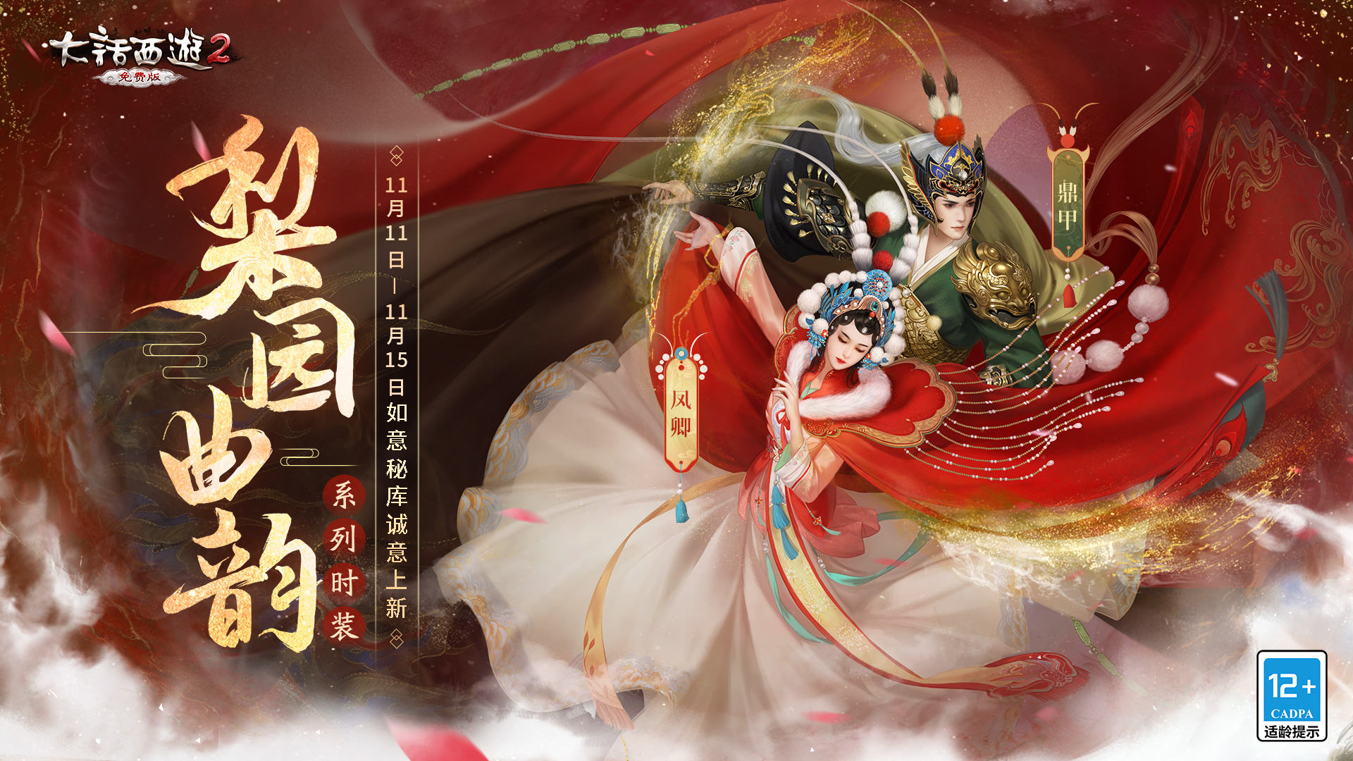 与此同时,梨园曲韵系列时装也将惊艳现身如意秘库,男装鼎甲,女装凤卿,国粹京剧乘乐声而来,将国之精髓幻化成一曲梨园之声,送入大话江湖,陪伴各位大话兄弟走过一程又一程的高光时刻,也体验戏曲文化带来的百年中华风韵!