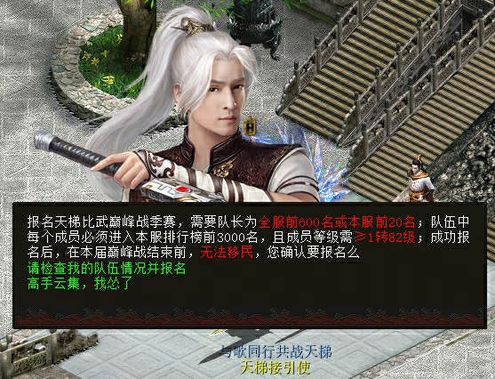 4、报名NPC:皇宫的徐茂功(或天梯接引使),只有拥有报名资格的队长才可见报名选项